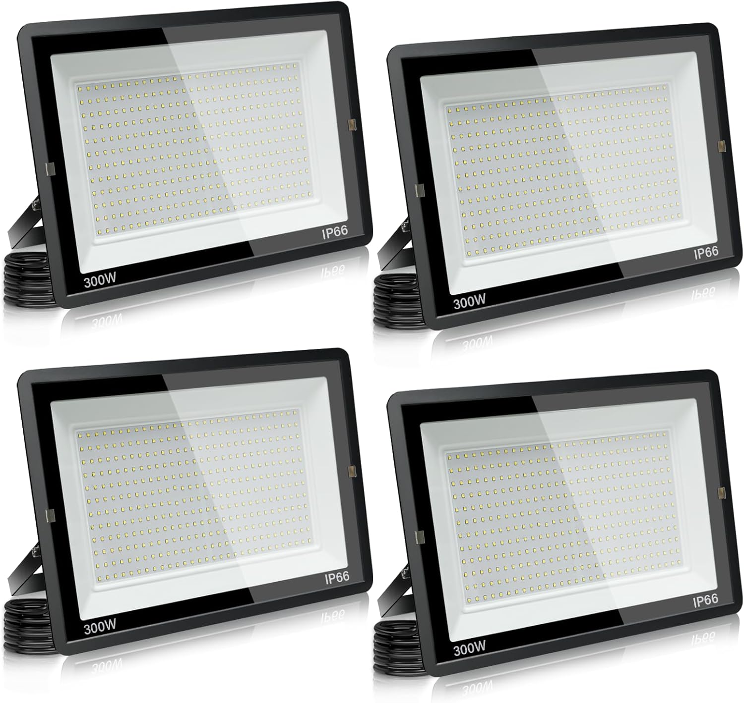 6pack 300W Projecteurs LED Éxterieur, 31000LM Spot LED Extérieur Super Lumineux IP66 LED Projecteur, 6000K Blanc Froid Eclairage de Sécurité Floodlight pour Jardin, Cour, Garage, Entrée, Terrasse