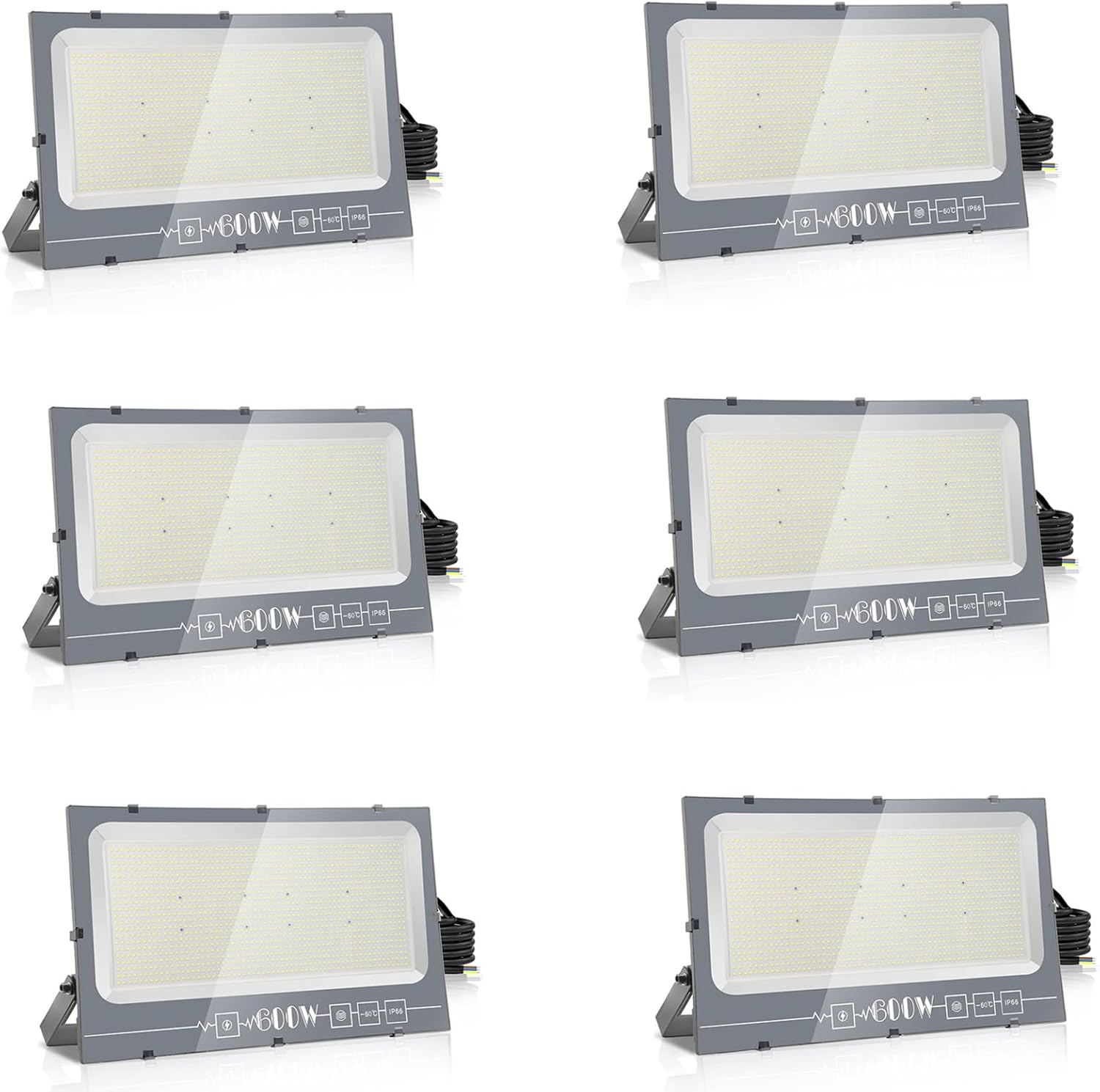 Royana Projecteur Extérieur LED 600W 6x, 60000LM Spot Extérieur, 6000K Blanc Froid IP66 Imperméable, Floodlight de Sécurité pour Jardin, Cour, Terrasse, Square, Usine