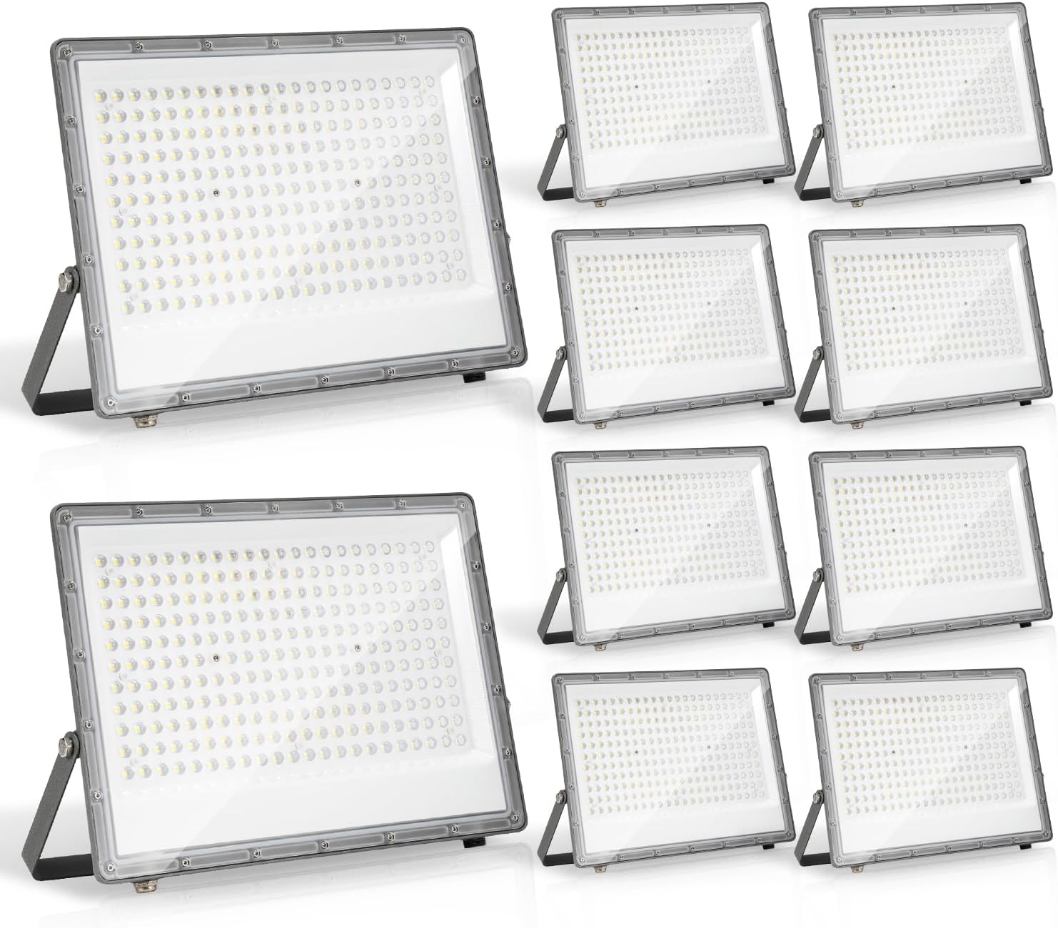 Yakimz Lot de 10 projecteurs LED d'extérieur 4 x 200W, Spots LED Super lumineux, 19800lm, 6000K blanc froid, Étanche IP66, éclairage de sécurité Pour atelier, terrain de sport pas de fiche
