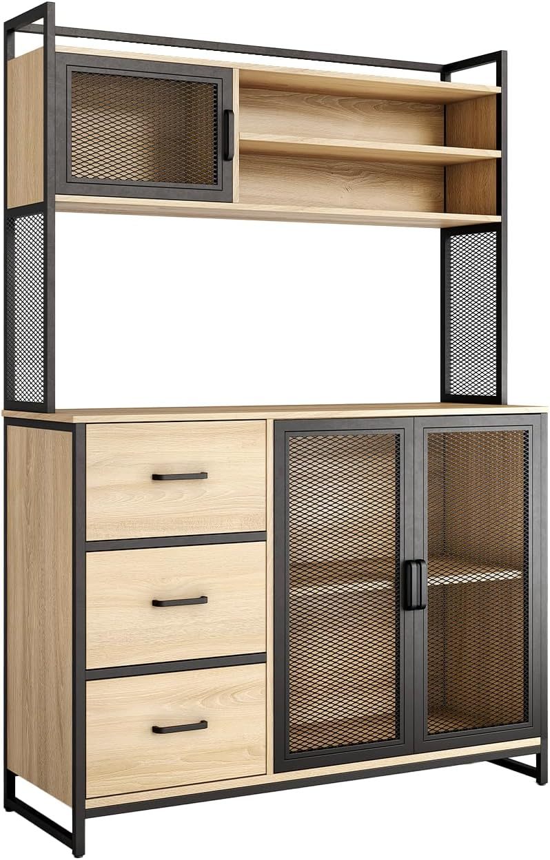 CATAVANA - Buffet Multifonctionnel 116 x 40 x 170 cm - Design Moderne pour Cuisine, Salon ou Bureau - Meuble de 3 Portes et 3 Tiroirs pour un Rangement Optimal de Vos Ustensiles, Livres et Décorations