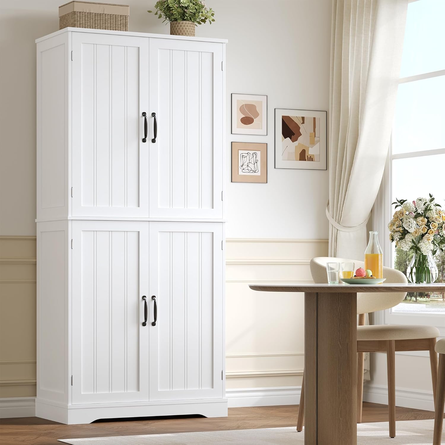 HOCSOK Buffet Cuisine, Meuble de Cuisine avec 4 Portes et Manche en Argent, 180x80x40 cm, Armoire Chambre avec 6 Compartiments pour Salle à Manger, Moderne, Blanc