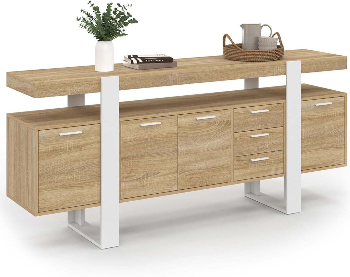 IDMarket - Buffet 180 cm Phoenix XXL 4 Portes avec 3 tiroirs Bois et Blanc