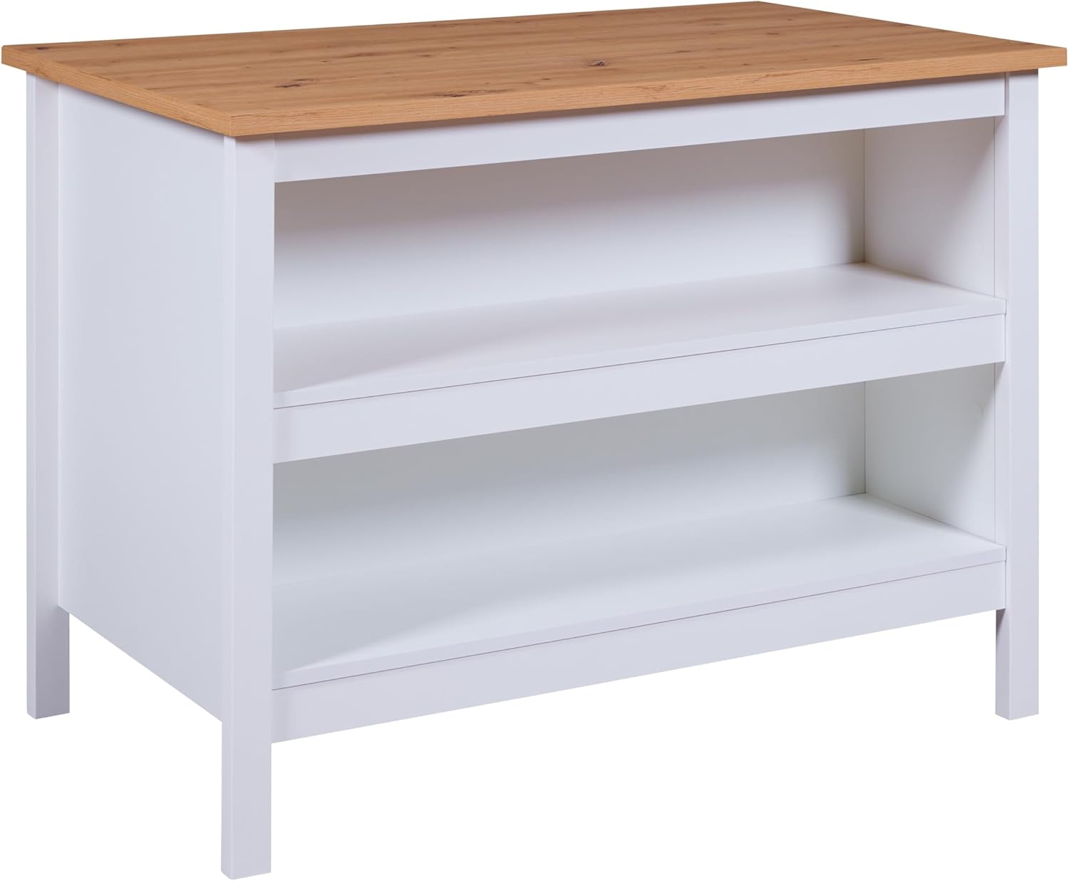 Inter Link - Ilot de cuisine - Ilot central - Plan de travail - Meuble de cuisine avec étagères - Mélaminé - Longueur 124cm - Hauteur 82 cm - Profondeur 75 cm - Julina - Blanc/Chêne Artisan