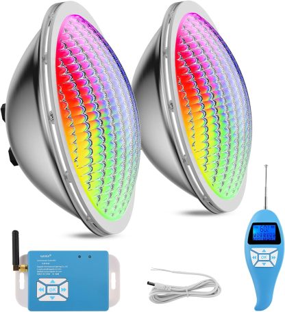 LyLmLe LED Piscine PAR56, 30W Projecteur Piscine 316L Acier inoxydable RGB Multicolore Synchroniseur Externe avec Télécommande, Angle de faisceau 120°, IP68 Etanche, AC 12V, Lot de 2