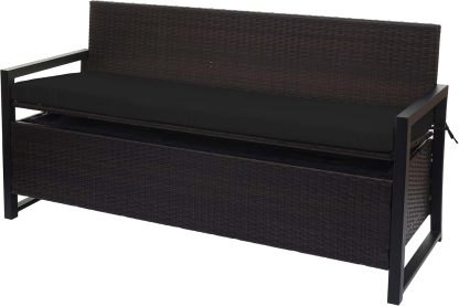 Mendler Banc 3 Places en Poly rotin HWC-F39 Brun, Coussin Noir
