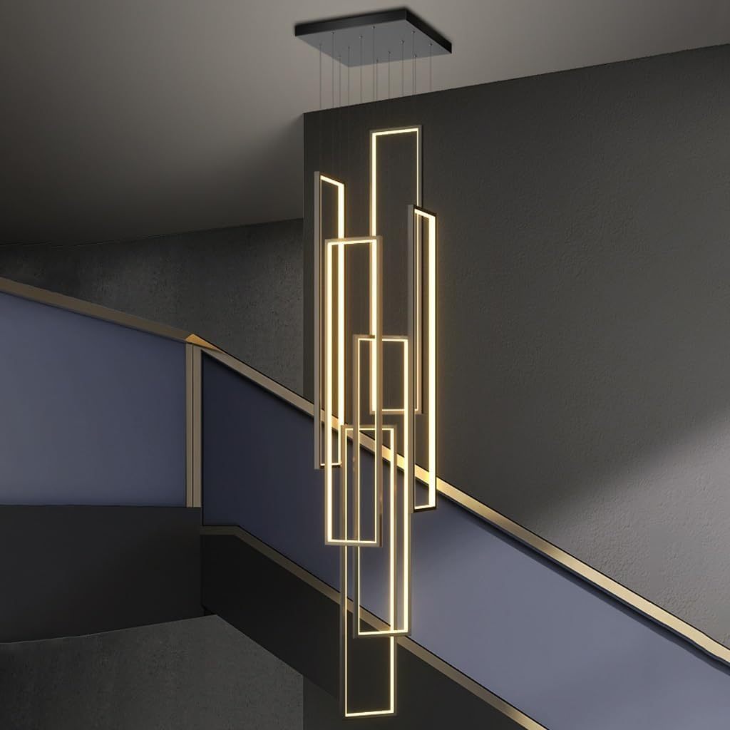 PANNN Plafonnier Lustre LED Dimmable Suspension Moderne Escalier Minimaliste Lampe Avec Télécommande 230W Longue Suspension Lampe Pour Salon Couloir Villa Hôtel, 6 Lumières, Noirs