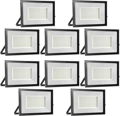 Probapro 100W Projecteur LED Extérieur 10 Pièces, IP65 Étanche Lampe, 10000LM 3000K Blanc Chaud Eclairage Exterieur - Super Lumineux Spot de Sécurité pour Jardin, Garage et Cour