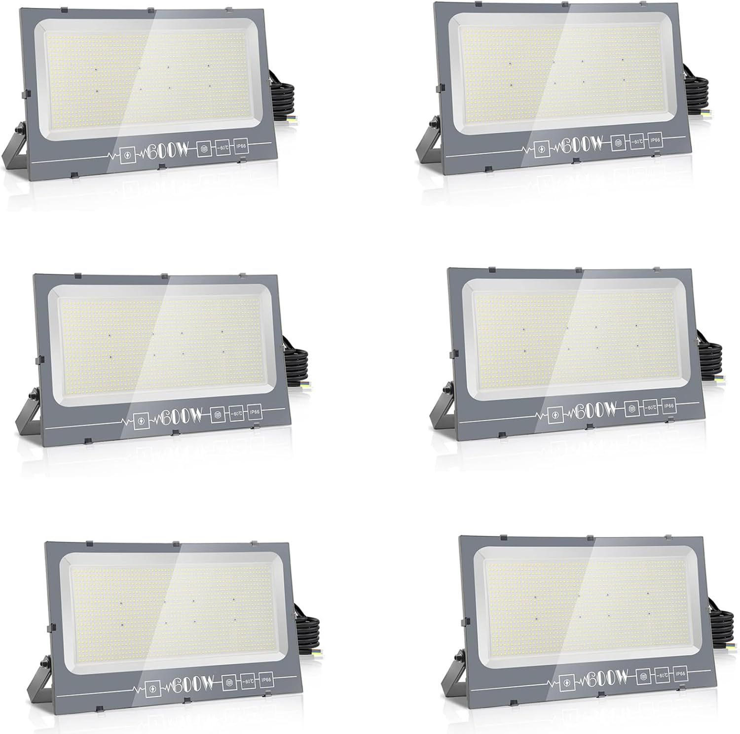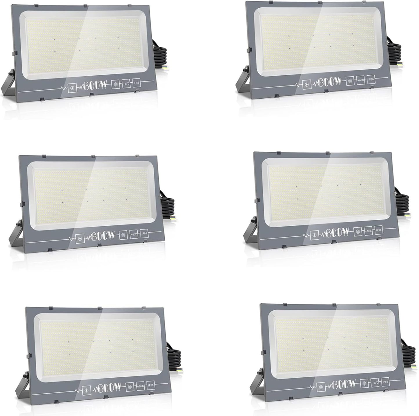 Royana Projecteur Extérieur LED 600W 6x, 60000LM Spot Extérieur, 6000K Blanc Froid IP66 Imperméable, Floodlight de Sécurité pour Jardin, Cour, Terrasse, Square, Usine