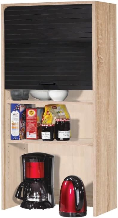 SIMMOB Meuble Haut de Cuisine Chêne Rideau Noir 4 Niches 60 x 124 x 35 cm