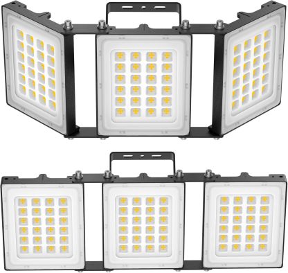 SOLLA-2025 Lite 300W LED projecteur extérieur, 30000LM, 6000K lumière du jour blanche IP66 imperméable, éclairage de sécurité extérieur réglable à 3 têtes pour les parkings, les cours-Noir-2 Pack